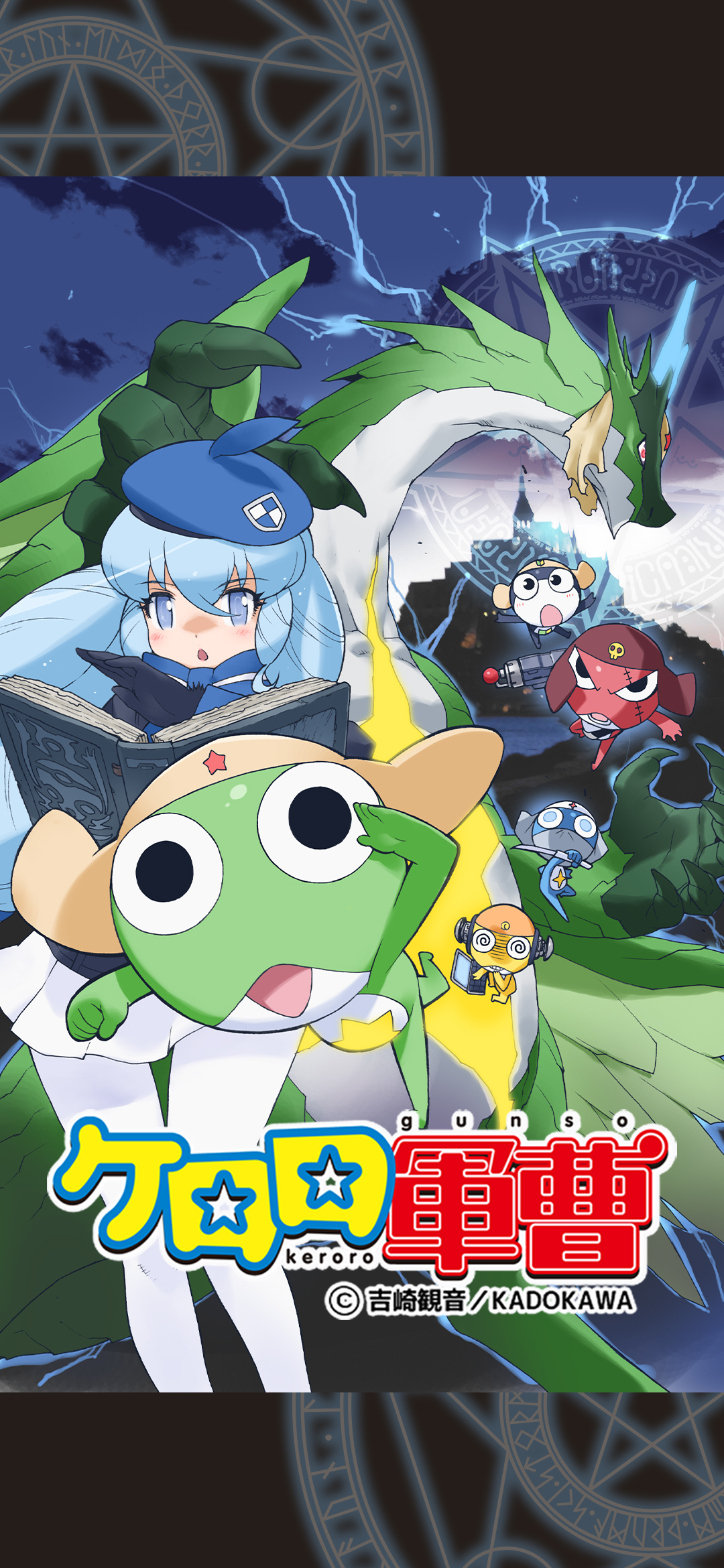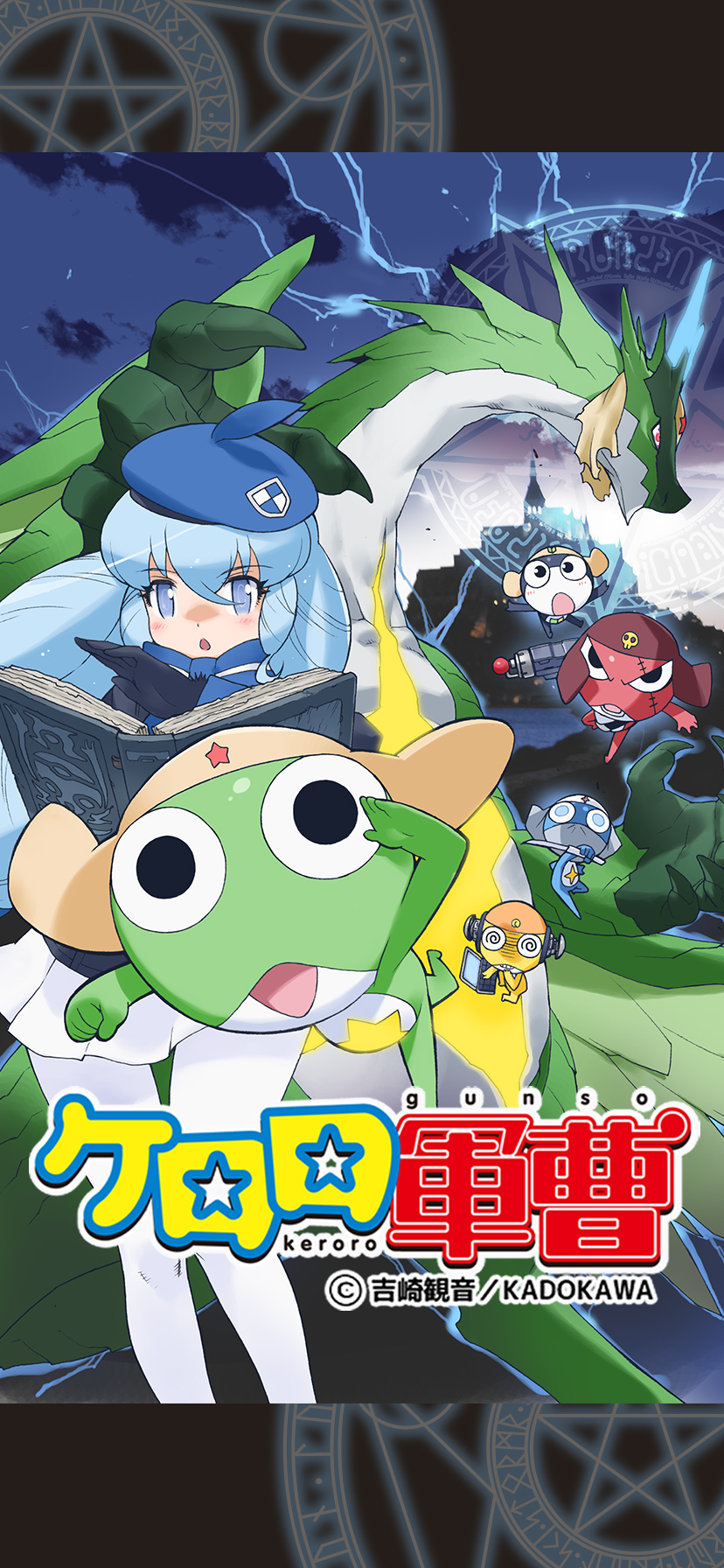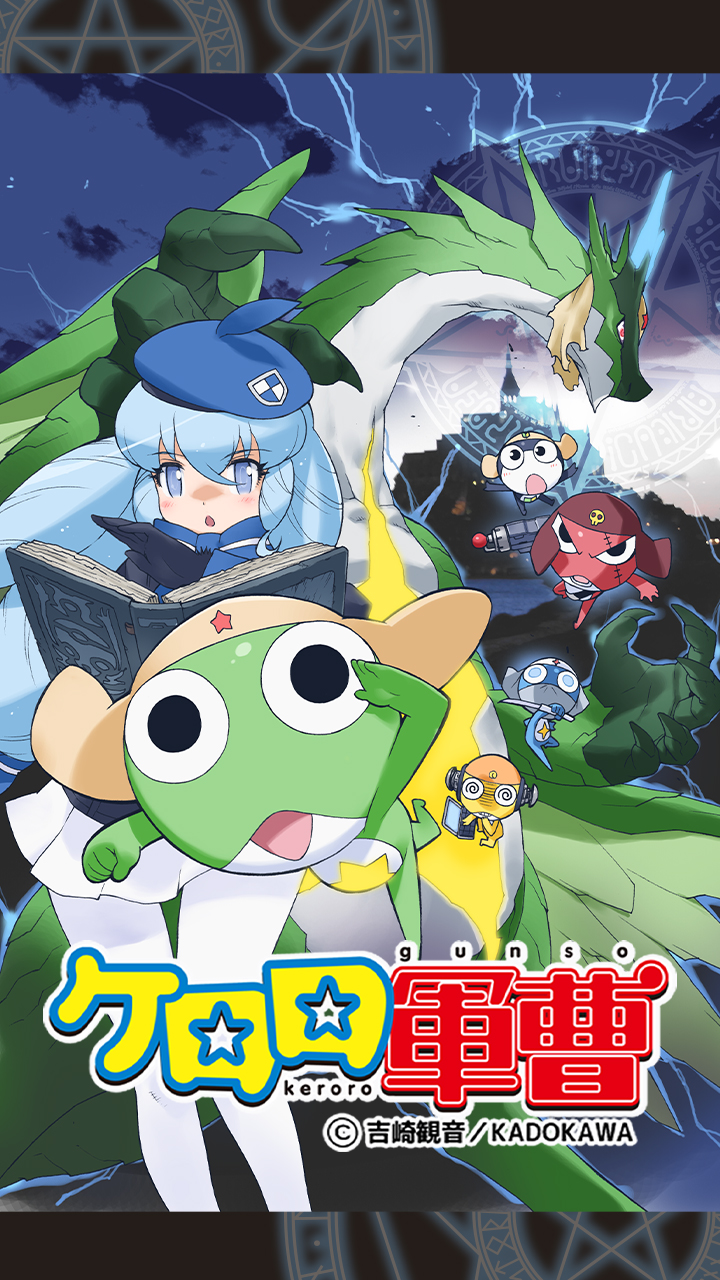 大好評のPC&スマホ用壁紙配信1月版は先月に引き続き、劇場版新作を記念して、劇場版第5作『超劇場版ケロロ軍曹 誕生!究極ケロロ 奇跡の時空島であります!!』の際の少年エース表紙イラストを使った特別仕様! ケロロ型のモアイを持つアリサが目印☆